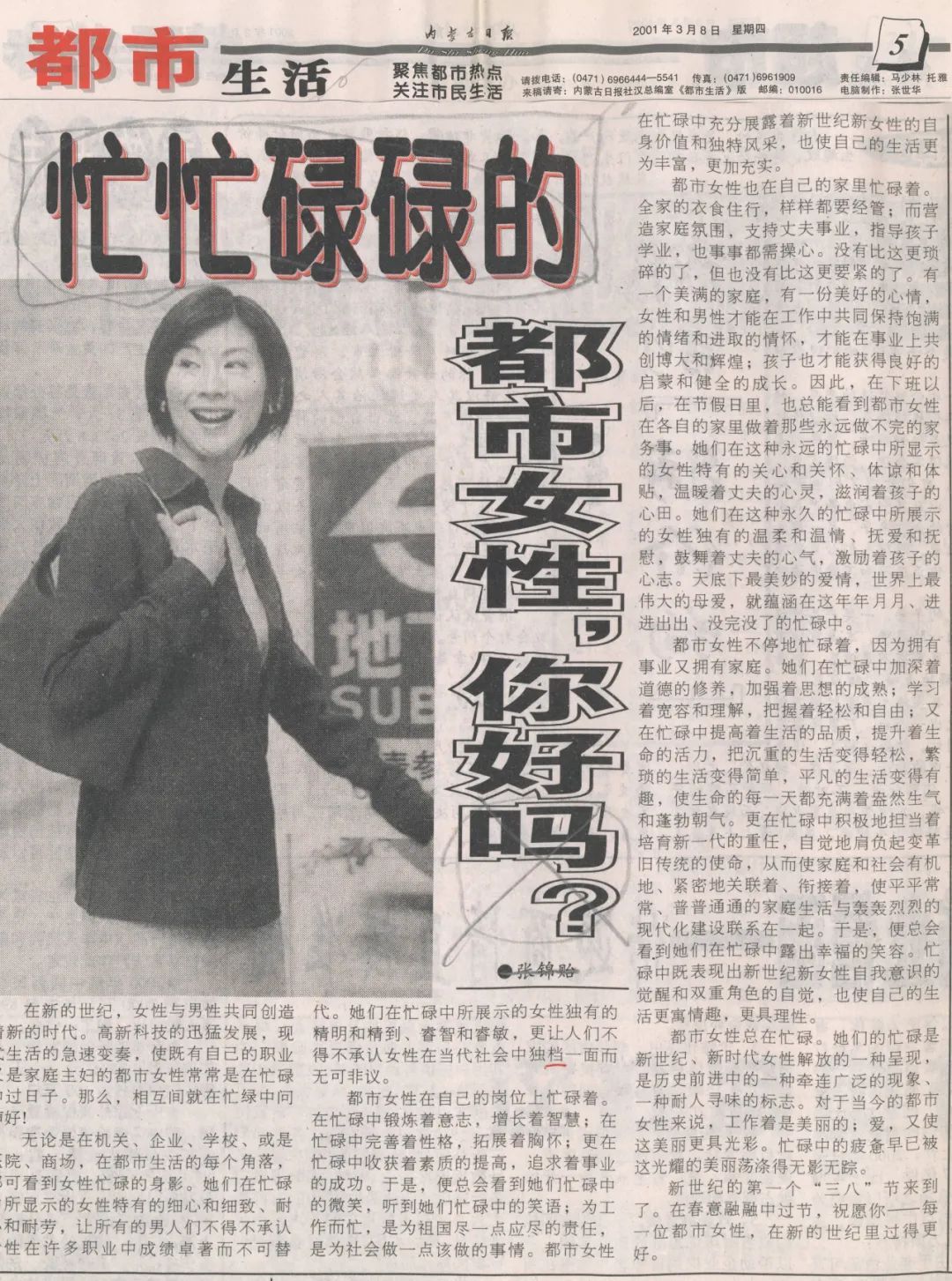 《內(nèi)蒙古日?qǐng)?bào)》 2001年3月8日