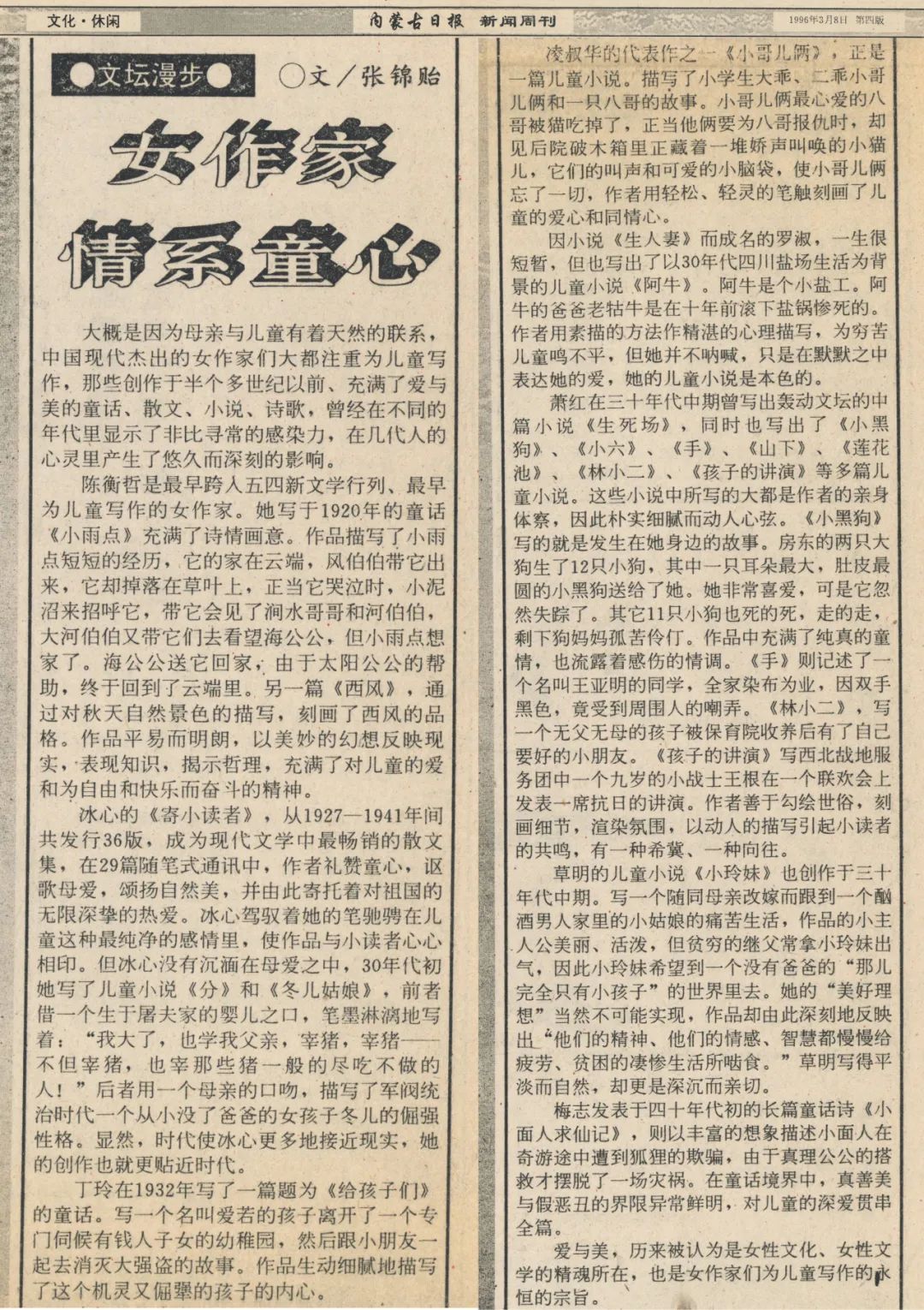 張錦貽作品《女性文學(xué)與兒童文學(xué)淺談》