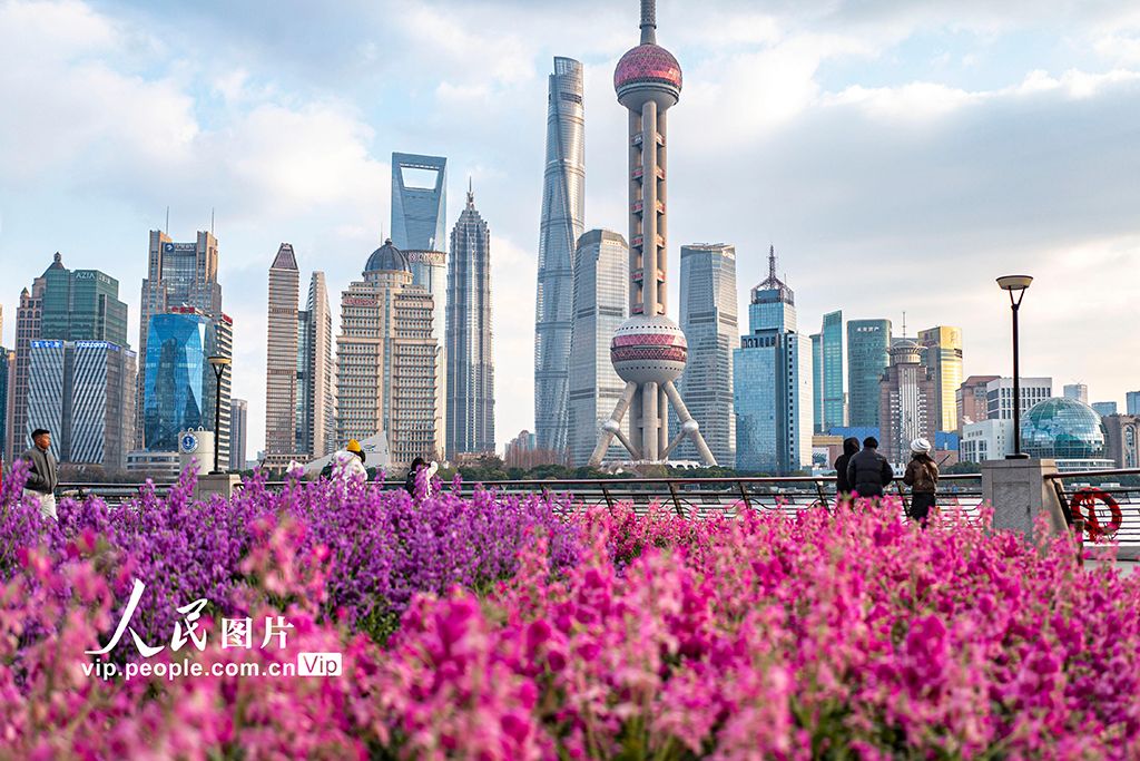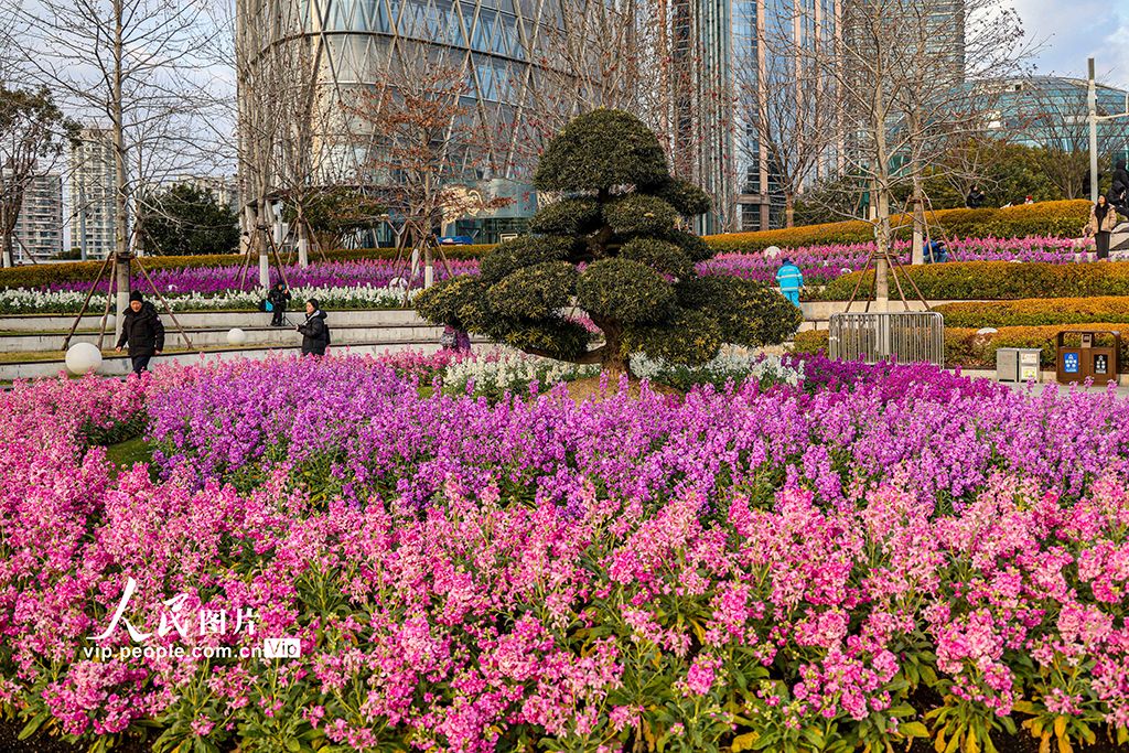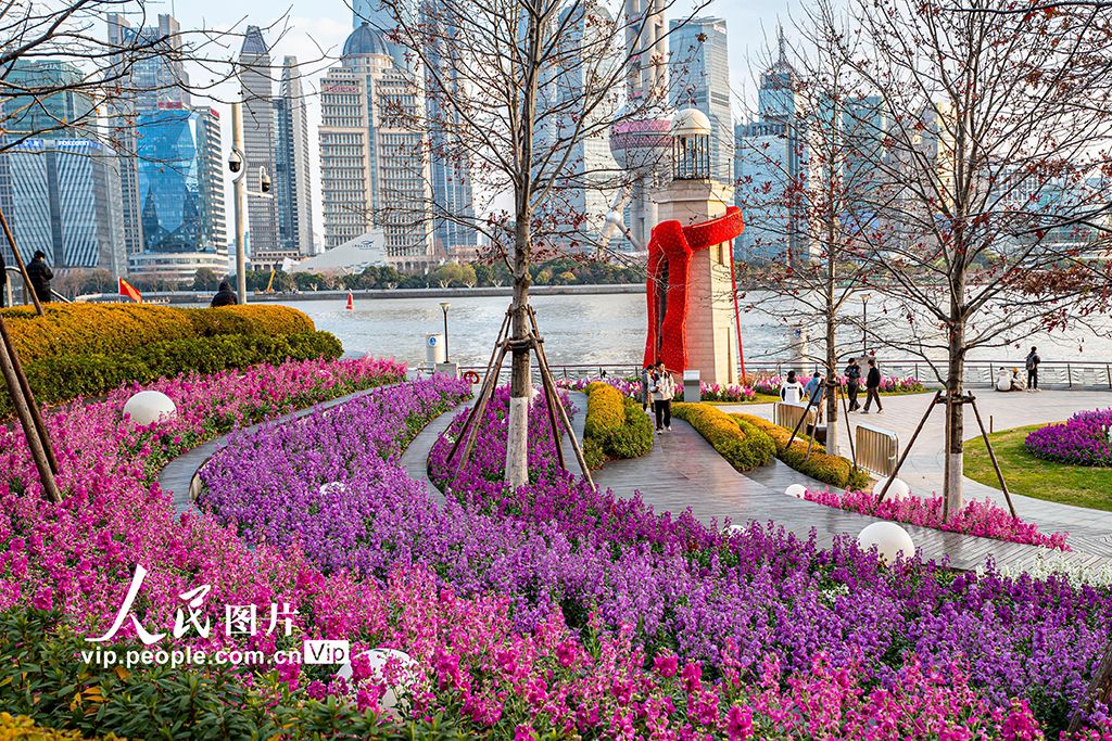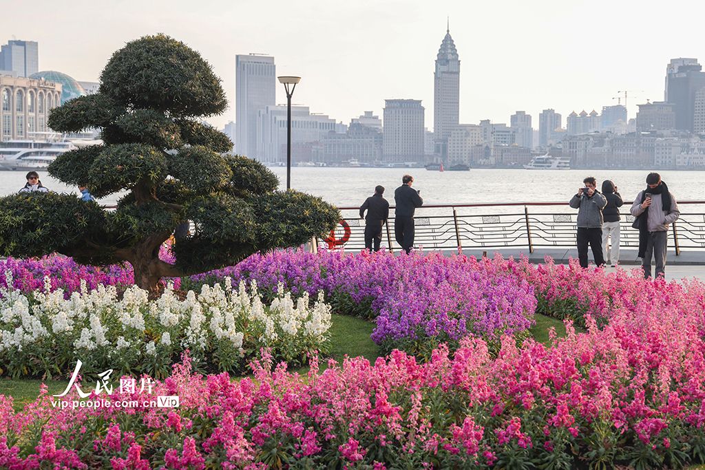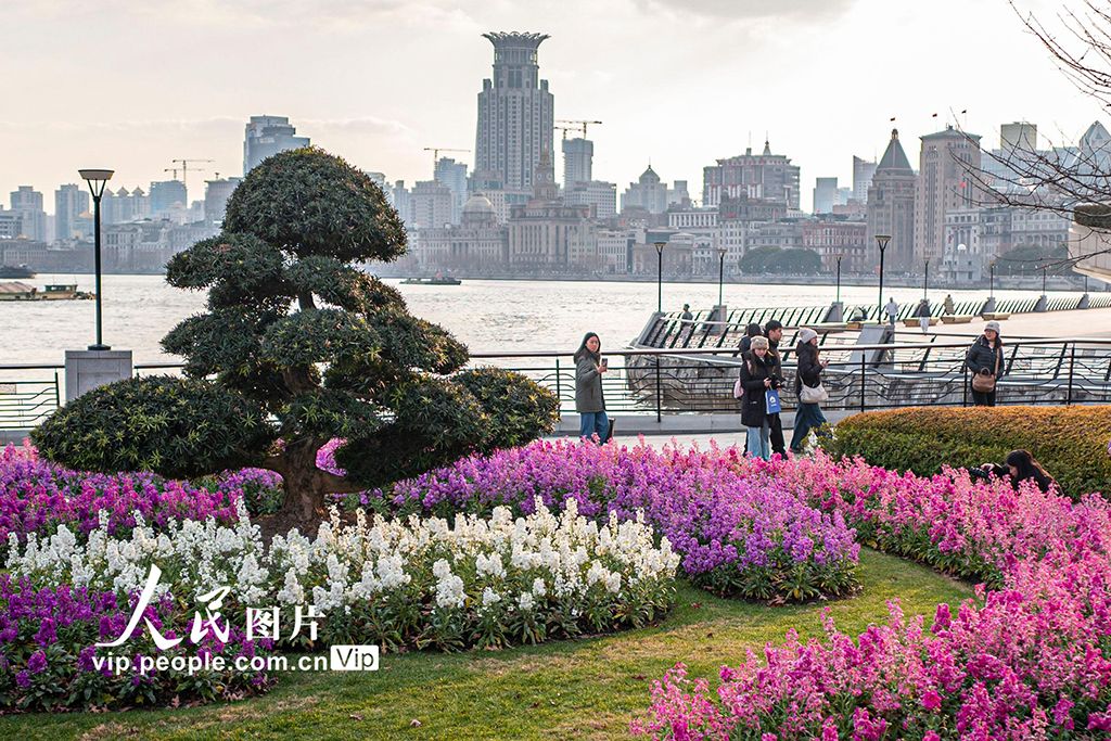 近日,上海虹口區(qū)北外灘的紫羅蘭競相綻放,成為黃浦江畔一道亮麗的風(fēng)景線,吸引不少市民游客駐足觀賞。王初攝(人民圖片網(wǎng))